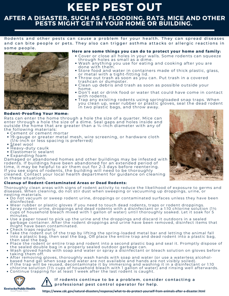 • Prevent pests after disasters – Flooding can bring rodents into homes.